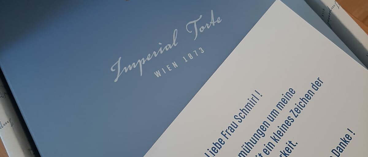 Schokolade, nicht in ihrer Reinform, sondern "kaiserlich" veredelt. In diesen Genuss kam gestern unser Service-Team, insbesondere unserer Kollegin Anja Schmirl, mit deren Serviceleistung ein Kunde so zufrieden war, dass er eine "Imperial-Torte" von der Wiener Ringstraße auf den Weg nach Bad Fischau-Brunn geschickt hat.