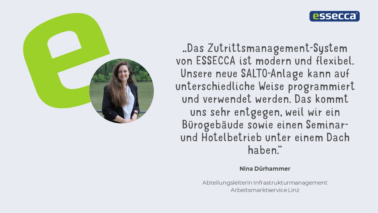 Ausschlaggebend für die Beauftragung war einerseits die Tatsache, dass aufgrund der Listung als BBG-Partner im Bereich Zutrittstechnik mit SALTO Systems ESSECCA konkurrenzlos im BBG-Beschaffungsportal war und andererseits das System genau den Anforderungen des AMS Linz entsprach.